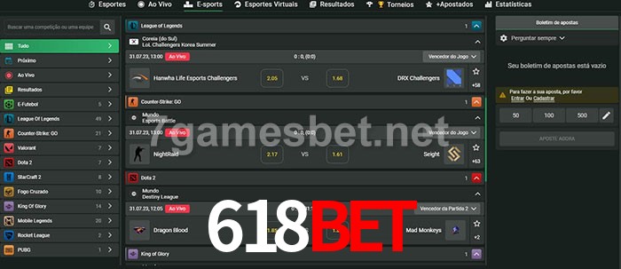 A aposta 618Bet oferece aos jogadores a experiência mais conveniente de apostas em eSports!